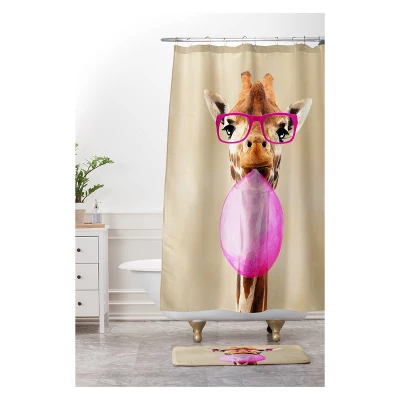 Coco De Paris Clever Giraffe With Bubblegum Bath Rugs And Mats Buff Beige 24″ X 36″ – Deny Designs