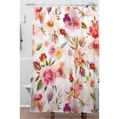 Utart Hygge Watercolor Midsummer Dogroses Pattern Shower Curtain Pink – Deny Designs